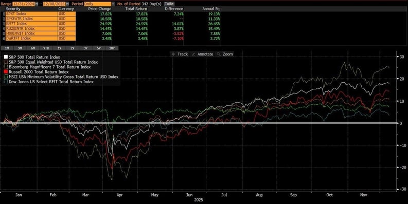 Source: Bloomberg YTD Total Returns Through 12/8/2025